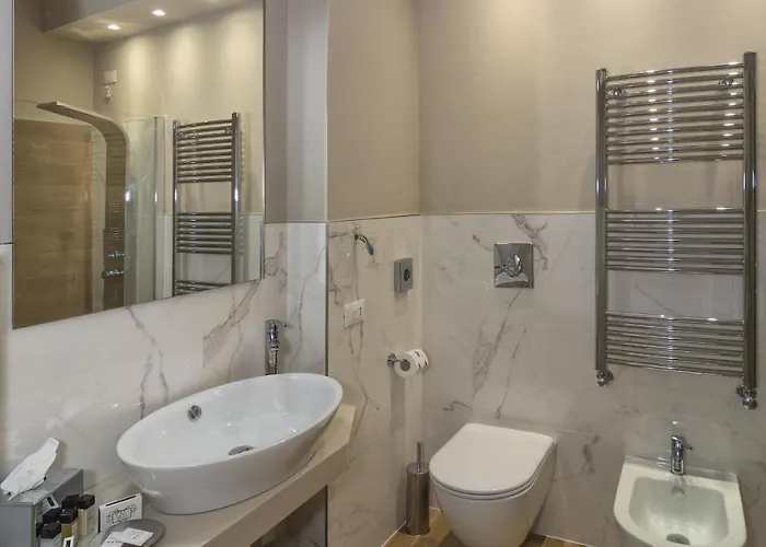 V každém pokoji je mini-lednička, přístroj na přípravu kávy/čaje a TV s plochou obrazovkou se satelitními kanály, stejně jako koupelny s bidetem, samostatnou toaletou a sprchou.